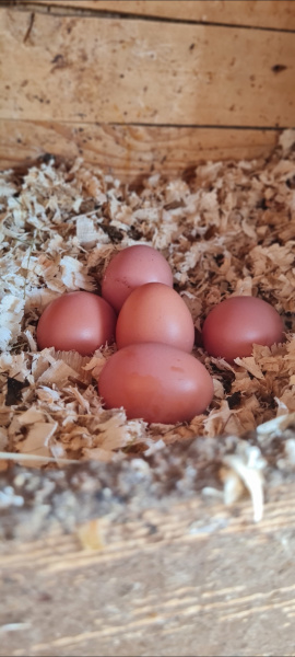 Máme 9 sliepok a 1 kohúta, ktoré chodia z kurína do voľného výbehu v ktorom strávia väčšinu dňa, takže: