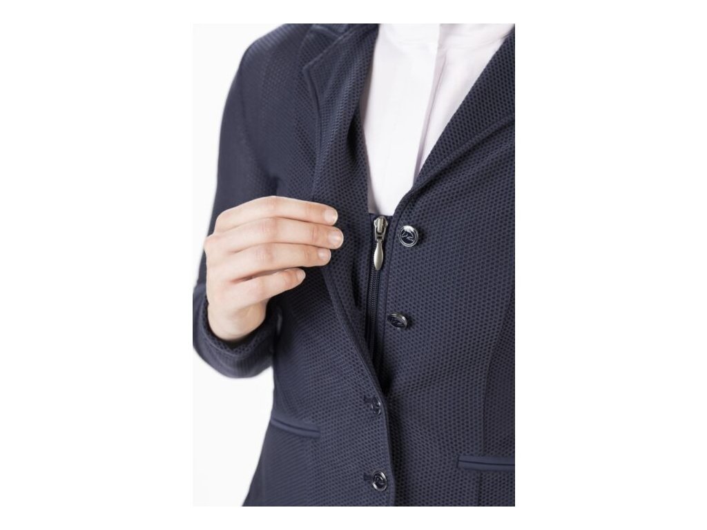Ultraľahké a priedušné jazdecké sako z elastickej sieťoviny. Vypasovaný strih, skrytý zips a veľké vonkajšie vrecká zaručujú maximálne pohodlie a praktickosť.