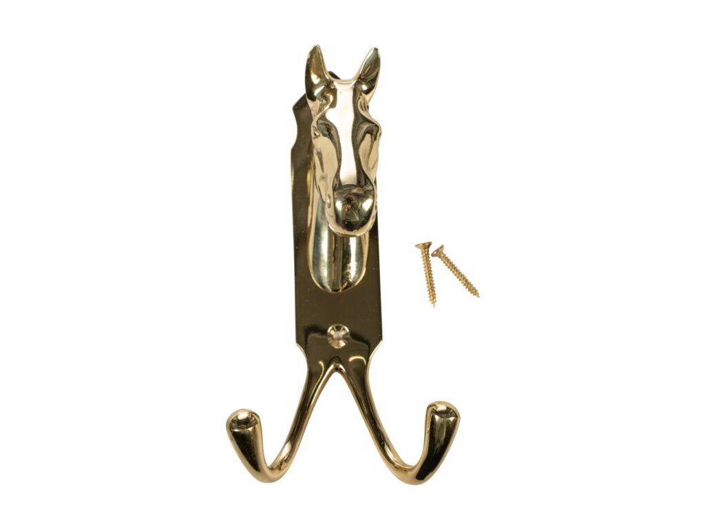 Tento držiak z masívnej mosadze v tvare konskej hlavy je vybavený dvoma háčikmi, ktoré ponúkajú praktické a flexibilné riešenie na zavesenie jazdeckej výstroje či iných predmetov. Robustné spracovanie zabezpečuje vysokú odolnosť a dlhú životnosť.