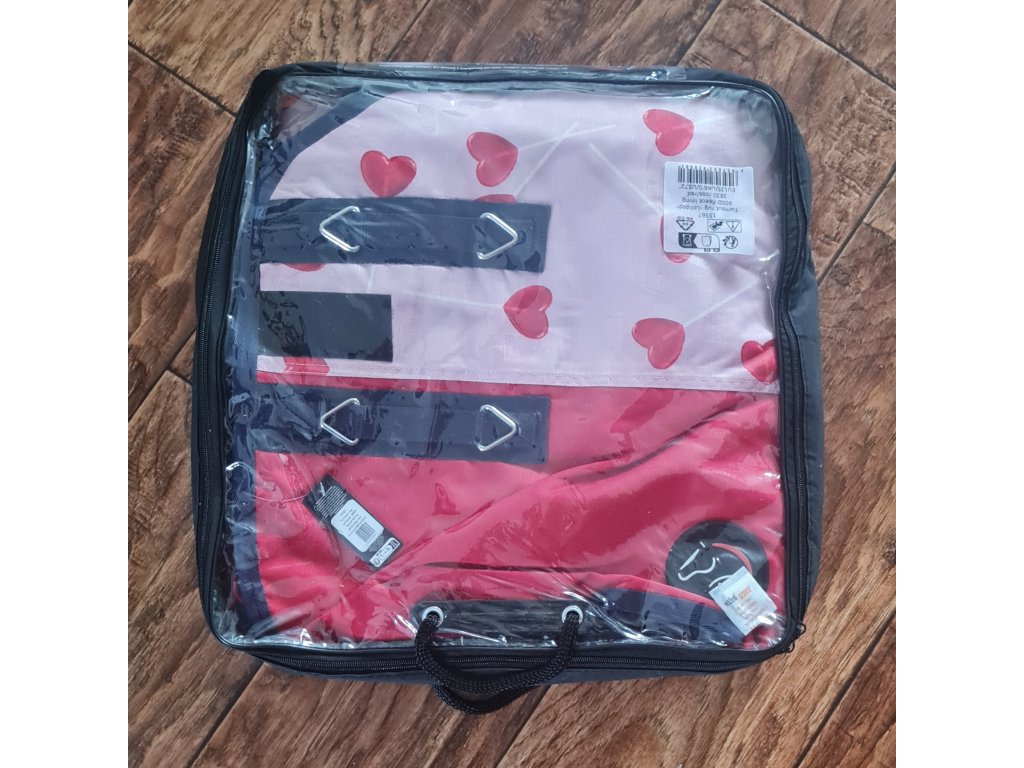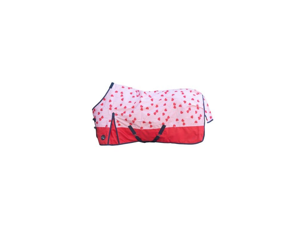 Deka je vyrobená z pevného a odolného 600D rip-stop materiálu, ktorý odolá aj náročným podmienkam vo výbehu. Praktické zapínania a nastaviteľné popruhy zaisťujú pevné a bezpečné usadenie na tele koňa, pričom hladký povrch sa ľahko čistí.