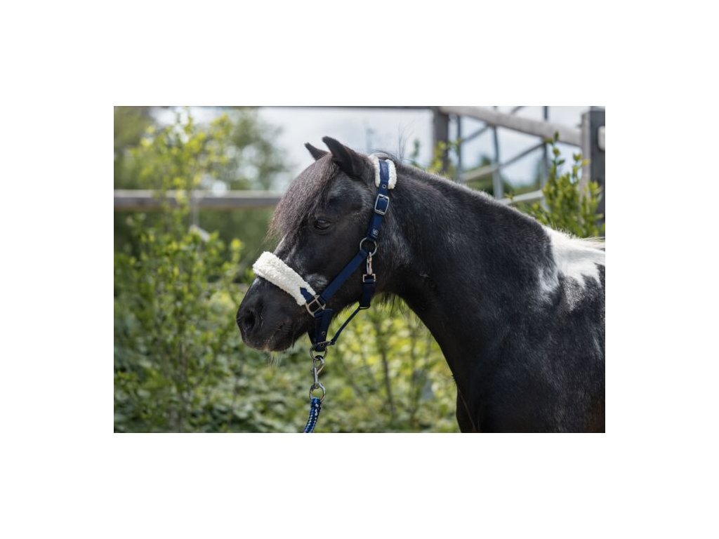 Nánosník aj hlavový diel sú podšité mäkkým teddy polstrovaním, ktorý zaisťuje maximálne pohodlie a chráni citlivú pokožku poníka pred odieraním. Ohlávka má praktické karabínové zapínanie, vďaka ktorému sa jednoducho nasadzuje a skladá – ideálne aj pre deti.
