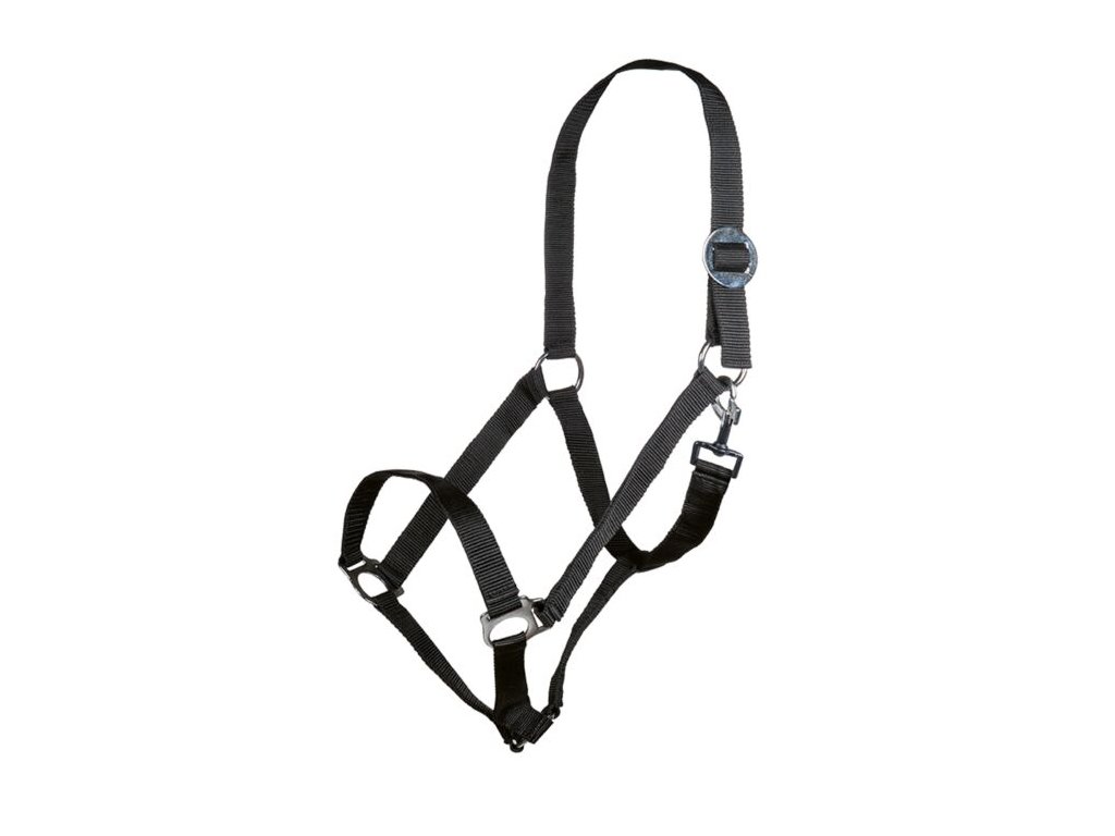Pohodlná ohlávka pre koňa z ekonomickej rady, vhodná na každodenné používanie. Kvalitné, pevné popruhy doplnené o odolné kovové strieborné pracky zabezpečujú dlhú životnosť a spoľahlivosť. Rýchloupínací karabínový uzáver na líci umožňuje rýchle a jednoduché nasadzovanie.