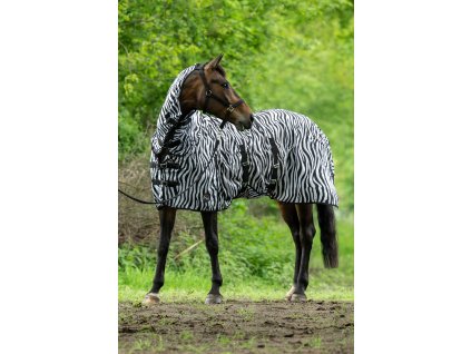 Ľahká a priedušná sieťová deka so zebrovým vzorom a integrovaným krkom, ktorý prirodzene odpudzuje hmyz. Extra dlhé boky a nastaviteľné zapínania zabezpečujú pohodlie a ochranu...