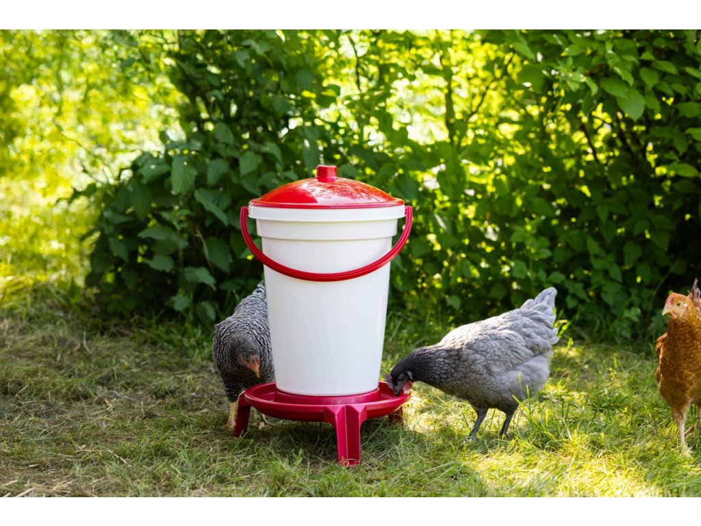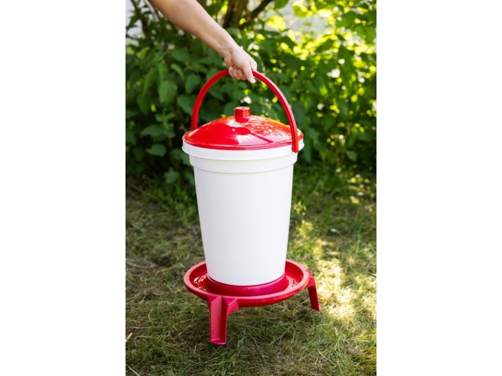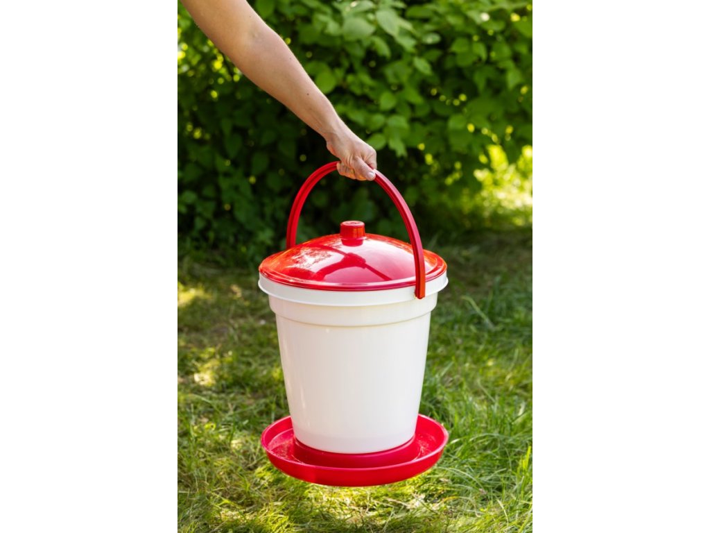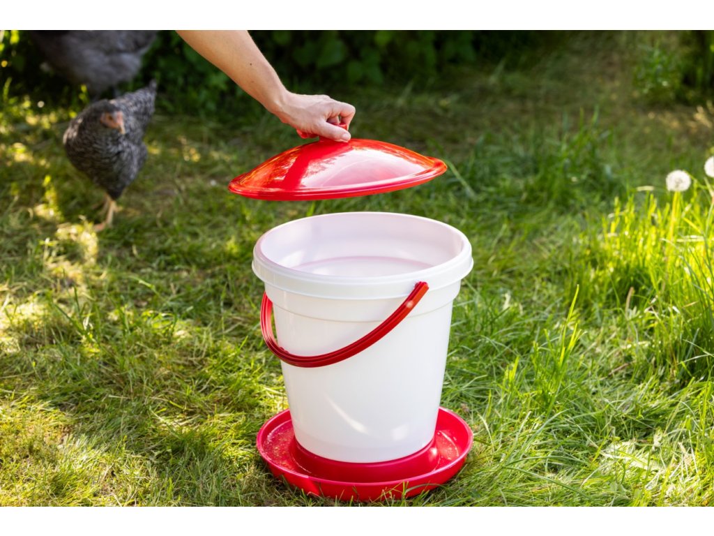Vedro je vyrobené z pevného plastu, ktorý je hygienický, ľahko umývateľný a odolný voči poveternostným vplyvom. Vďaka praktickému držadlu sa jednoducho prenáša, dopĺňa aj čistí. Konštrukcia je navrhnutá tak, aby sa vedro pohodlne používalo v kurníku aj v exteriéri.