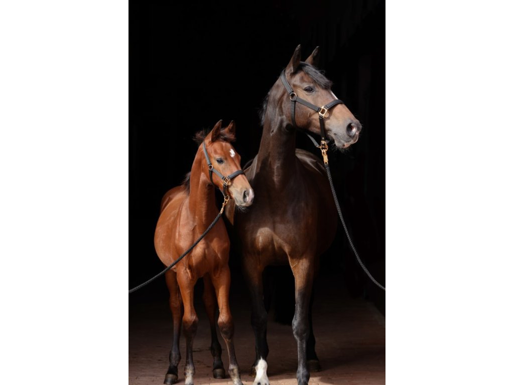 Ohlávka je 2-bodovo nastaviteľná, s šírkou popruhu 20 mm, ideálna pre prvé návyky na ohlávku a bezpečné vedenie žriebäťa.