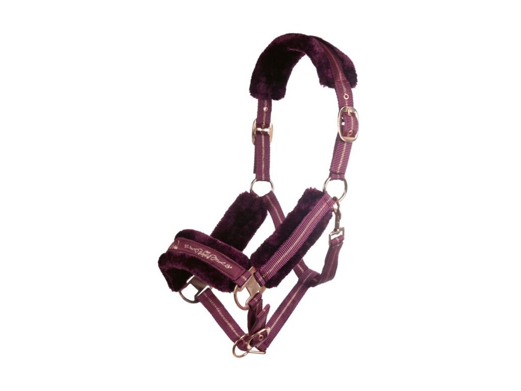 Elegantná ohlávka s mäkučkým kožušinkovým vypodložením na nose, temene a lícach. Má nastaviteľné zapínanie na nose a hlave z každej strany.