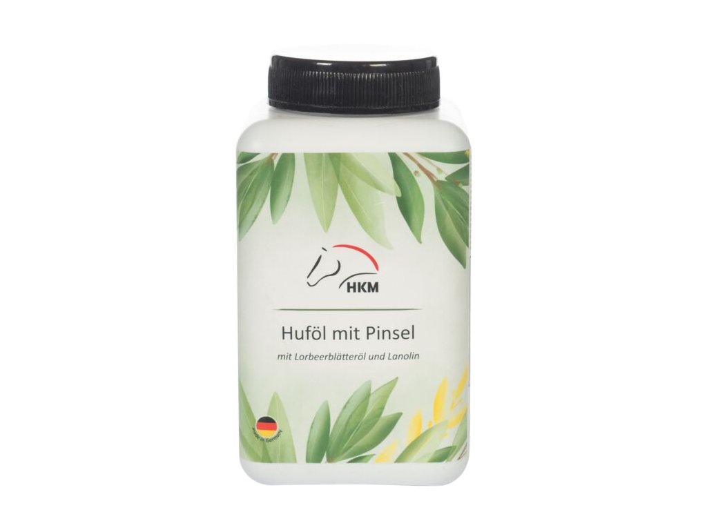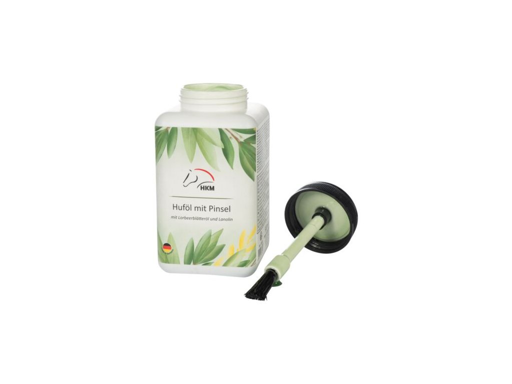 Olej na kopytá so štetcom (500 ml) od značky HKM je špeciálne vyvinutý produkt v kategórii kozmetika pre kone, ktorý obsahuje kvalitné oleje, najmä vavrínový olej a lanolín. Tieto účinné látky intenzívne hydratujú a vyživujú kopytá, čím zabezpečujú ich zdravie, elasticitu a prirodzený lesk.