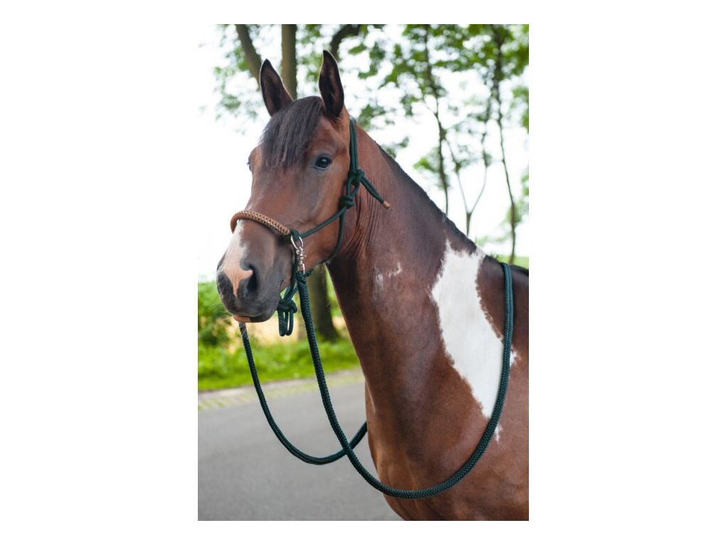 ✔️ Vodítko s karabínou – jednoduché pripnutie a bezpečné vedenie koňa.