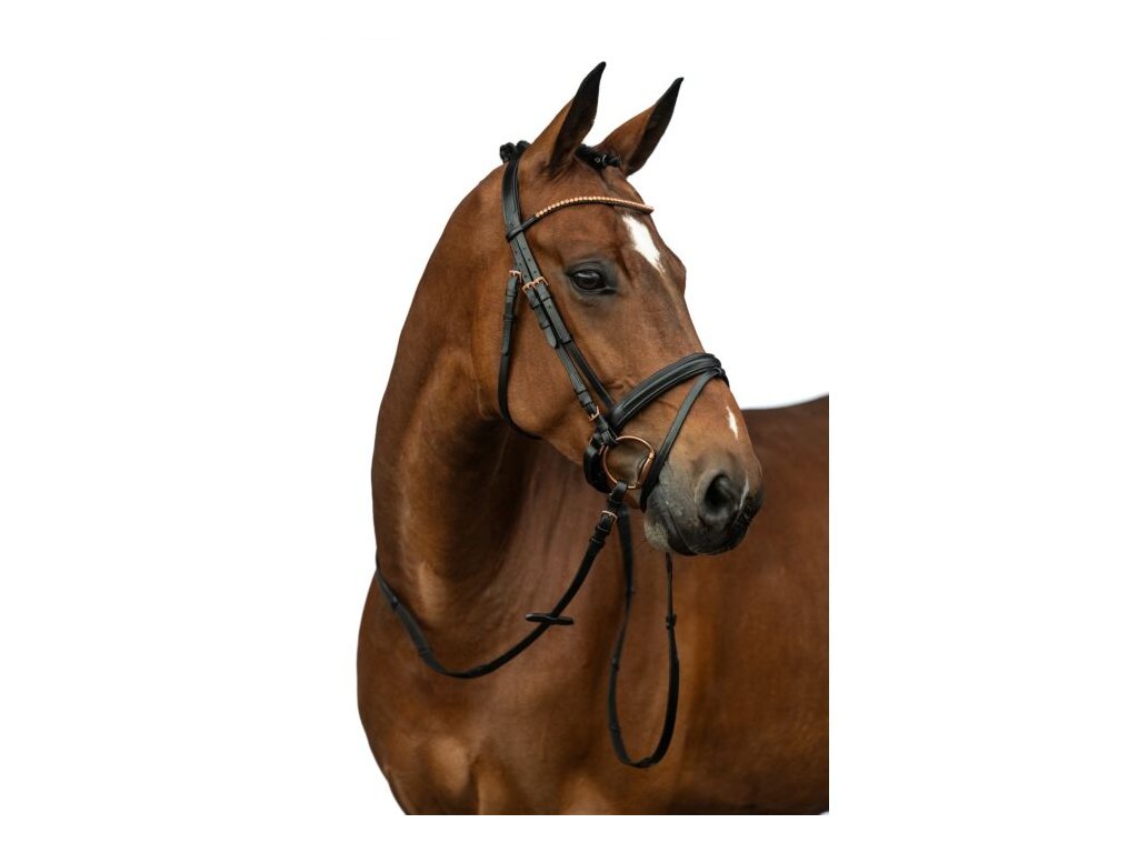 Čelenka je zdobená syntetickými diamantmi, ktoré dodávajú uzdičke trblietavý a výnimočný vzhľad. Praktické prepínacie zapínanie zabezpečuje jednoduché používanie a prispôsobenie.