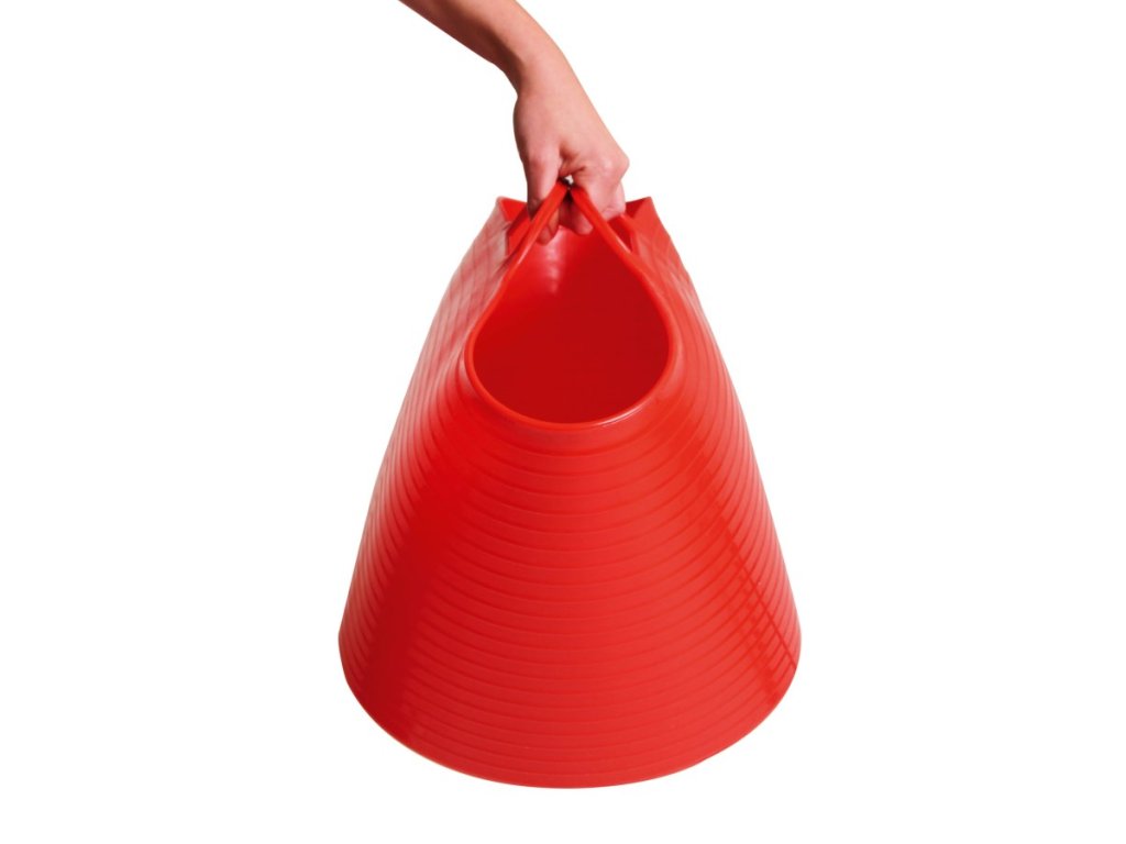 Vďaka dvom pevným držadlám je možné vedro prenášať jednou rukou ako tašku alebo dvoma rukami pri väčšom zaťažení. Flexibilita materiálu zvyšuje komfort pri nosení a uľahčuje vyprázdňovanie obsahu.