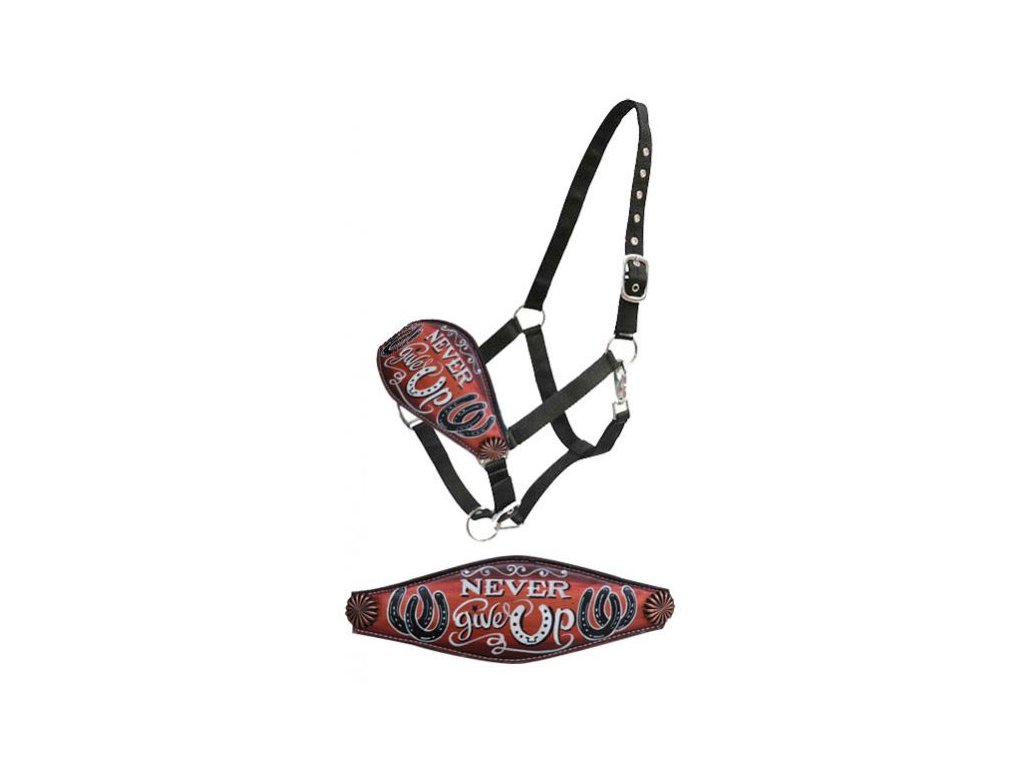 Westernová ohlávka „Never Give Up Leather Noseband“ je kombináciou praktickej nylonovej ohlávky a výrazného westernového dizajnu s posolstvom. Je určená pre jazdcov, ktorí chcú svoj vzťah ku koňom vyjadriť aj prostredníctvom detailov a motivačných prvkov.